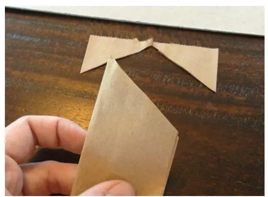 貓頭鷹是夜行動物,白天睡覺晚上“浦頭”,日常生活中我們很難見到它的真容,但是它那呆萌的樣子還是圈粉無數(shù)讓多少人成了貓頭鷹控啊!自己動手做一只貓頭鷹“養(yǎng)”在家里好像還能“望梅止渴”呢!首先將手提紙袋的一端剪成倒三角的形狀,如下圖