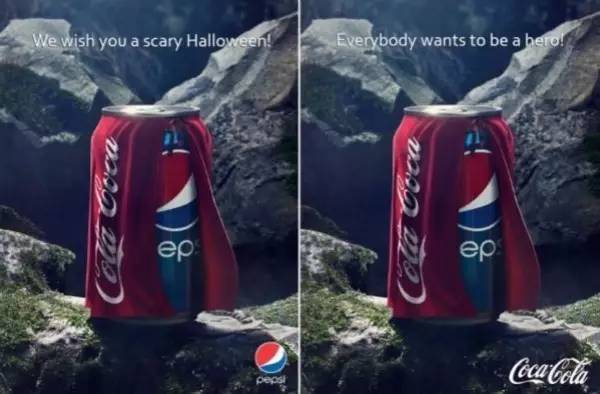 然后小編發(fā)現(xiàn)一個(gè)有趣的事情,原來這100多年來,百事和可口可樂這對(duì)“冤家”一直在互黑對(duì)方,這劇情可以說是癡癡纏纏,神情虐戀啊!把對(duì)方踩在腳下“當(dāng)墊腳石”都不是事兒。。。