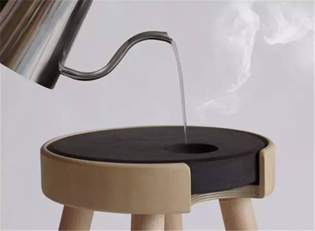 4、設(shè)計(jì)師將熱水袋的設(shè)計(jì)放在了板凳坐墊上——一個(gè)可拆卸的陶瓷座面,可以通過(guò)傳統(tǒng)注水的方式,讓坐墊熱起來(lái)。冬天注熱水凳子可以變熱,那夏天想要凳子變涼,那是不是可以注些冰水呢?