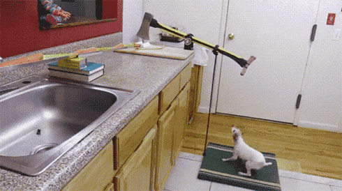 8、美國(guó)一位Youtube上的紅人,也是腦洞頗大,設(shè)計(jì)這款自動(dòng)切菜神器。只是心疼了汪,跳了半天,也沒(méi)吃上一口肉肉。狗狗此時(shí)的內(nèi)心獨(dú)白應(yīng)該是:鏟屎的,你沒(méi)事把肉掛那么高干嘛?老子跳半天也沒(méi)吃上一口,等下我心情不好了就會(huì)想拆家的哦!嗯,小編這狗語(yǔ)十級(jí),掌聲鼓勵(lì)。