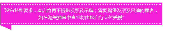 不僅代購們?nèi)绱?,連一些電商平臺上做代購生意的,也都紛紛打出告示,郵寄或帶回國時不再保留吊牌或小票等物。那么問題來了,把沒用小票、沒有吊牌,消費者如何知道這產(chǎn)品是不是真的是從海外買回來的,而不是假貨?看似拆吊牌能解決交稅的問題,其實不然,人家關說了:沒說拆了吊牌就不查。