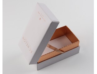 此款手表盒定制采用157克銅版紙裱800克灰板紙,商標(biāo)燙金,圍邊用特種紙裱灰板紙。手表禮品盒整個設(shè)計以紅色為主,面紙表面LOGO采用了燙金工藝,光亮顯眼。手表盒設(shè)計,圍邊選用金黃色特種紙裱灰板,與白色盒子搭配,金色代表華麗,白色代表優(yōu)雅,那么金色與白色的搭配就是美感與視覺上的享受。