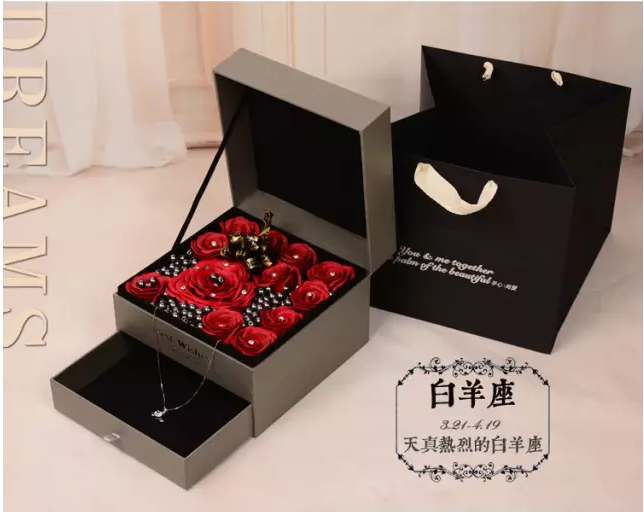 白羊座是天生果敢者,他們永遠(yuǎn)生機(jī)勃勃、激情盎然,他們熱情坦率、慷慨真誠(chéng)、堅(jiān)強(qiáng)勇敢,在生活中是個(gè)不拘小節(jié)之人,而他們的項(xiàng)鏈禮盒當(dāng)然要用最有熱情的火紅色玫瑰來點(diǎn)綴!