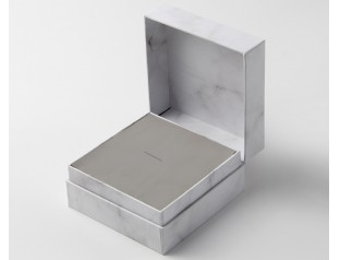 首飾盒子使用雙銅紙制成,雙銅紙因其本身材質(zhì)的特點強度好、有韌性,紙張挺度和彈性較好,通常作為較高端的產(chǎn)品包裝,這款盒子采用精美專色印刷工藝制成,尺寸可按需求定制。一個包裝盒上必不能少的一個元素就是logo了,這個盒子的logo采用頂級燙金、凹凸工藝制成,看起來很有質(zhì)感;這個盒子特殊的紋理效果給人環(huán)保又不失單調(diào)的感覺,無需過多的雕琢鑲嵌就充滿貴族的氣質(zhì)。