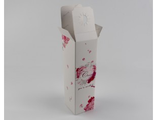 飄散著的粉色花瓣,制造了一種浪漫、溫馨的感覺,情侶間共享燭光晚餐不防也帶上這樣一個酒盒包裝,渲染一下氛圍。駿業(yè)包裝設計印刷的紅酒盒一如既往的平整干凈,厚實、美觀,精湛工藝可見一斑。酒盒開口處那固定酒瓶的圓孔設計,別出心裁,卻為攜帶的安全性帶來一份保險。