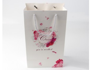 女人愛美,所以需要化妝品來維持自己的美貌,化妝品對于她們來說是非常重要的,所以不僅要求品質(zhì)要好,連包裝的質(zhì)量也要過硬才能擄獲各位美少女的心哦~精致的印刷,簡潔的設(shè)計,即使是花兒漫天飛舞的場景也不會覺得繁復(fù),logo使用精美的印刷工藝,凸顯品牌質(zhì)感;拎手處打孔膠封處理,不僅使化妝品紙袋看起來更加的美觀,且更加牢固,不用擔(dān)心提著提著就斷掉了。銀色的尼龍繩拎手讓紙袋更顯氣質(zhì)。