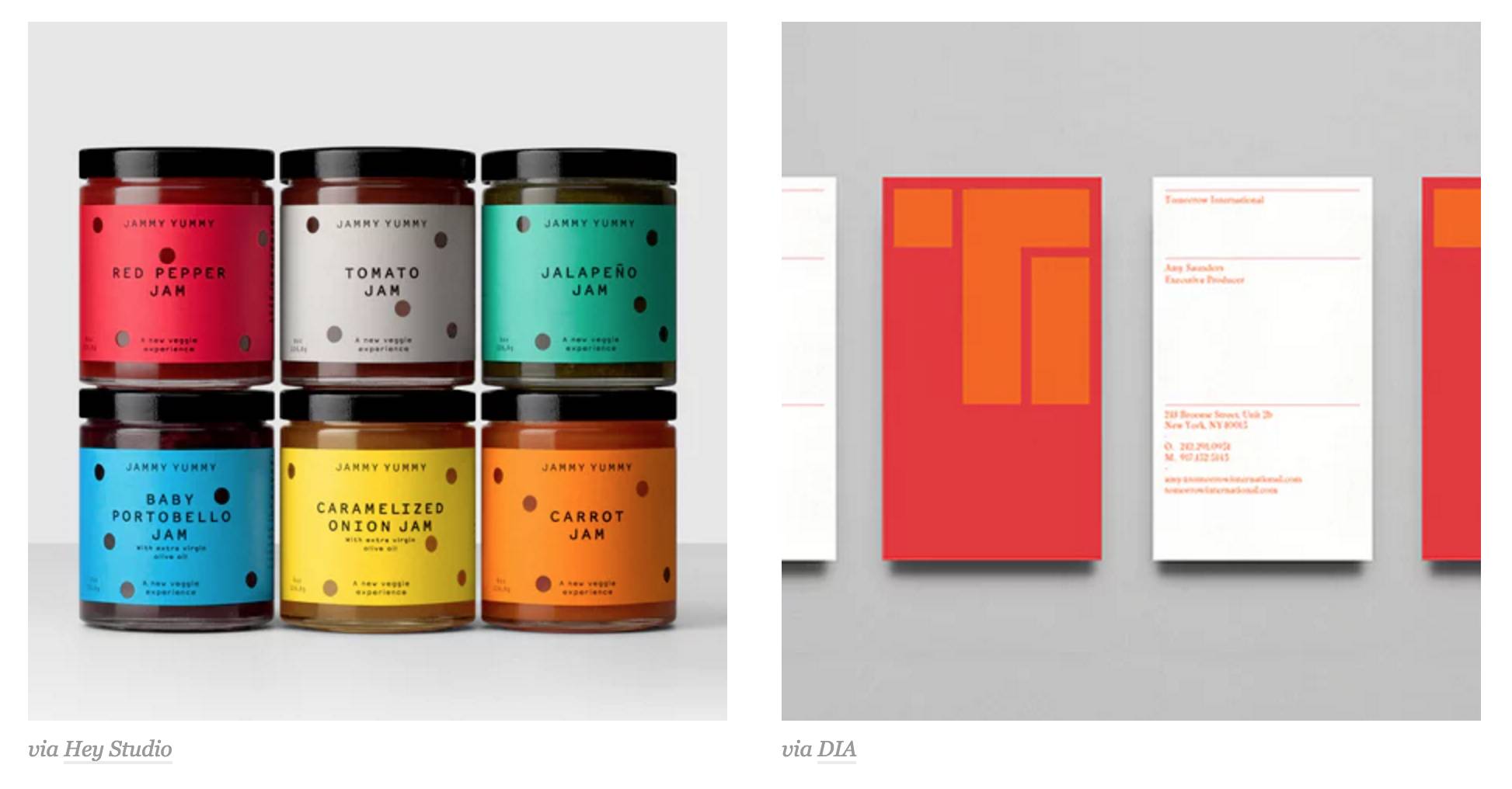 Chase在其Blinkbox的標(biāo)志中創(chuàng)建了一個(gè)可識(shí)別的藍(lán)色廣告。 DIA為Tomorrow International開發(fā)了一款有趣的雙色調(diào)調(diào)色板,Hey Studio設(shè)計(jì)了色彩明亮、飽和的,非常令人難忘的彩虹。
