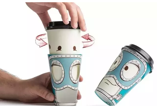 有趣的產(chǎn)品包裝設(shè)計(jì),可以為消費(fèi)者在產(chǎn)品使用之前或使用的過(guò)程中,增加一些互動(dòng)體驗(yàn)。這一招很奏效,能直接為消費(fèi)者的產(chǎn)品體驗(yàn)加分。比如亞美尼亞的設(shè)計(jì)工作室 Backbone Branding,為當(dāng)?shù)氐?Gawatt 餐廳設(shè)計(jì)的這款咖啡杯。盡管乍一眼看上去非常普通,但是當(dāng)你轉(zhuǎn)動(dòng)杯蓋的時(shí)候,杯身上卡通人物的表情就會(huì)開(kāi)始變化。設(shè)計(jì)師在每個(gè)杯子上都內(nèi)設(shè)了三款表情,消費(fèi)者可以轉(zhuǎn)動(dòng)杯子本身或者外層的杯套,來(lái)改變卡通人物的表情。來(lái)這樣一杯咖啡小編可以玩上一天!