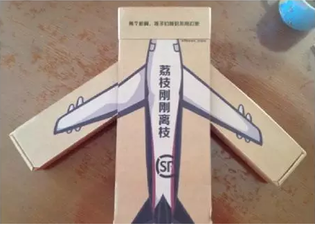 順豐優(yōu)選的荔枝包裝,用包裝盒可組合成飛機(jī)形狀,不僅能體現(xiàn)出順豐空運(yùn)速度,同事給受眾驚喜,產(chǎn)生分享。