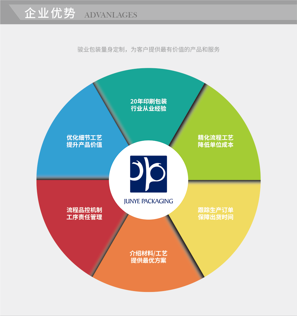 廣州駿業(yè)包裝實業(yè)有限公司始創(chuàng)于2001年,是一家以印刷包裝制品為主營業(yè)務(wù)的集設(shè)計、生產(chǎn)、銷售為一體的一般納稅企業(yè),主要生產(chǎn)各種精品包裝盒、紙袋、吊牌、束口袋、軟盒(每天產(chǎn)能達到50萬個),其主要應(yīng)用于服飾、皮具、化妝品、保健品、禮品、首飾、茶葉、酒類、電子產(chǎn)品及其它日用制品等行業(yè)。目前公司已加入多個印刷包裝行業(yè)互助協(xié)會,并通過了ISO9001質(zhì)量體系認證、德國萊茵認證、BV認證、SGS認證和WCA認證。