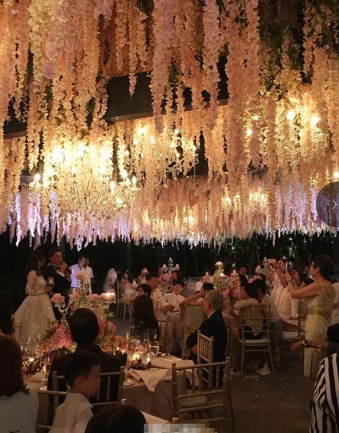 婚禮在寶格麗酒店著名水上婚禮地點舉行,婚禮儀式上,趙薇出席,與范冰冰“還珠幫”合體。此外,胡歌、徐若瑄、周迅、吳奇隆、劉詩詩、劉濤等人現(xiàn)身。婚禮儀式以撥動愛的心弦為主題,采用林心如最愛的粉絲布置,最引人注意的是舞臺中心的雙層心形花架。 晚宴內(nèi)場曝光!旁邊就是懸崖,能聽到海浪的聲音~布置靈感來自節(jié)日焰火,用了4種不同顏色、50000支的紫藤花串,微妙的漸變由粉到白,中間點綴50盞水晶,好似云霧中綻放的煙火~敲有心思!