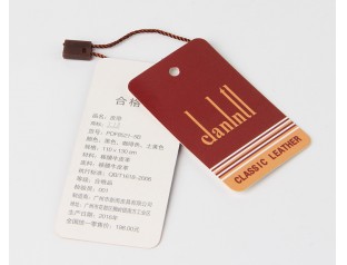 此款服裝吊牌印刷采用了特種紙,商標(biāo)燙金吊牌設(shè)計正面整體以暗紅色為主打色,搭配燙金的LOGO,在濃郁的紅色之中,點綴則耀目的金色,高檔大氣想了解更多服裝吊牌,歡迎致電廣州駿業(yè)包裝廠:020-66677799