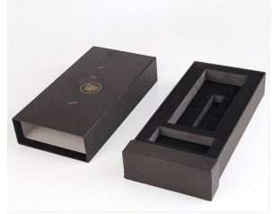 這個禮品盒定制選用的材質(zhì)是1000可白板紙為內(nèi)紙,裱紙則是雙銅紙,盒型是抽屜盒,盒身覆啞膠,看起來高貴神秘;可以看到這個禮品盒的表面布滿了用uv印刷出來的文字,在不同的角度可以看到不一樣的效果,這也是防偽的一種方法;盒子的logo采用的是燙金工藝,金燦燦的字體往往能讓人印象深刻,同時也凸顯了品牌質(zhì)感。