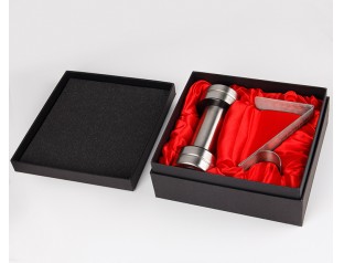 圍邊天地蓋禮盒定制是以雙銅紙作為原料,盒子表面的logo采用uv印刷工藝,覆啞膜;作為五金的包裝盒在盒子內(nèi)鋪了一層色丁布,增加禮盒的高級感,即使裝的是幾塊鐵也不顯得low;盒子表面壓紋處理有質(zhì)感,內(nèi)部做復(fù)黑色亞膜處理,底部用紅色的內(nèi)紙裱起來,使盒子更加的精致。