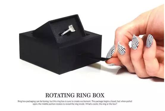 原本只是一只毫不起眼的小盒子,一拉,戒指突然閃亮登場了,它也不再是只普通的盒子了。在不起眼的地方制造驚喜那才叫真的驚喜,因?yàn)檎娴氖侨f萬沒想到!